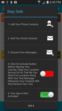 • Somewhere, If you feel yourself in danger, just Shake your phone OR Press the Power Button Twice or the App's Panic Button.