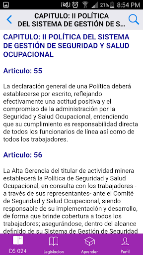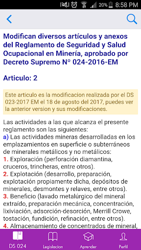 En esta aplicación se incluye todos los artículos del DS 024-2016 con información para el supervisor de Seguridad y todo aquel profesional relacionado con la Legislación de Seguridad del Sector Minero.