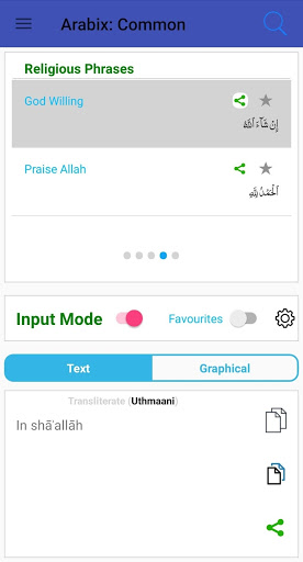 2. Select Qur'aanic Text, Names and common Arabic Phrases from predefined lists