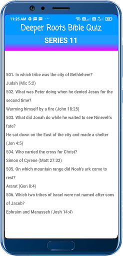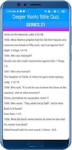 Features • Bible Quiz from Old and New Testament • More than 1050 Bible Quiz • Direct questions and Answers • Answers with Bible reference • We will regularly update this app with more Questions and answers • This app is very easy to navigate
