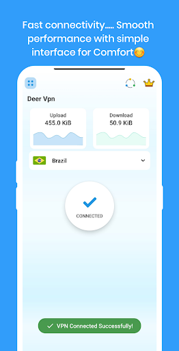 Deer vpn app provides free VPN proxy service. No need to make any configuration, just simply click on one button, you can access the Internet securely and anonymously.