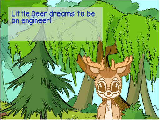 HoneyDee Labs creates interactive story apps for children about a little deer engineer exploring beginner STEAM concepts with his forest friends. Adults read them to children, ages 3-5, on smartphones and tablets, while kids play along by touching movable elements.