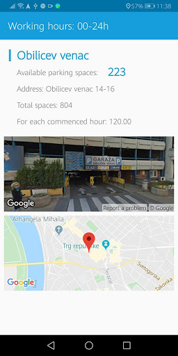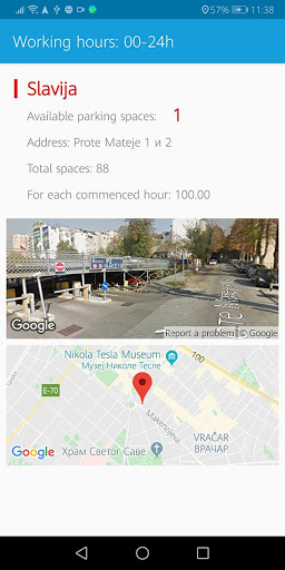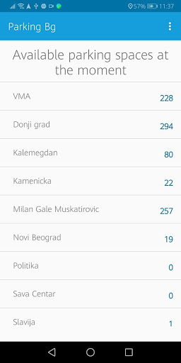The application shows how empty parking spots are in each one of the 24 public parking structures in Belgrade. At any given moment, with a simple interface,you have an insight into how many of the 24 public garages have free spaces. On the selected parking page, there are basic location shown, size, and price information of the choosen parking service. Below is a map for easier navigation, as well as a 3d Street view view of the building for easier orientation in the area. For users who do not know where the desired garage is located there are guided GPS navigation via Google Maps, with basic information about the distance from the object and the time required to the selected destination. Parking BG is a free application. FULL INTERNET ACCESS permissions are required to use, FINE LOCATION and COARSE (NETWORK-BASED) LOCATION (permission to easily edit the user's course to the desired destination).