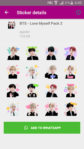 Add your favourite group to your daily conversations with your ARMY friends! This Pack has now has more packs! They are updated often to give you fresh stickers for your chats! This app has static and animated stickers.