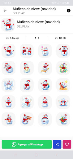 In this app you will find many stickers to send to your friends in the end-of-the-year season. There are stickers for Christmas and wish the best for the New Year. The app has more than 100 packs which 20-30 stickers each one.
