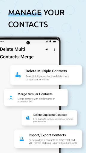 Delete Multi Contacts app gives multiple features like delete multiple contacts, merge similar contacts, delete duplicate contacts, and import/export contacts.
