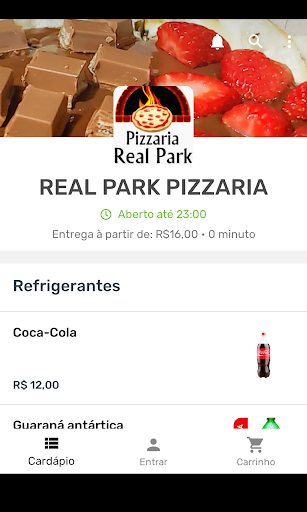 Pieza de entrega para la pizzería del parque real con pocos toques en la pantalla de su Android