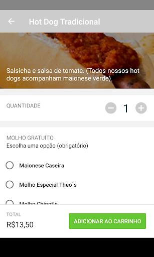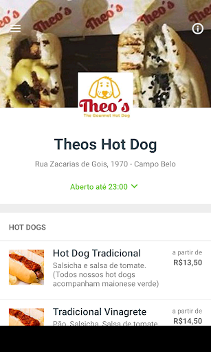 Peça Delivery para Theos Hot Dog com poucos toques na tela do seu Android