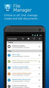 • File Manager - Organize the files you’ve downloaded and saved from your Mobile Workspace email, calendar or browser. Find, manage, create and edit documents, even when you are offline.
