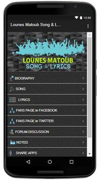 In this apps you can get info about Lounes Matoub biography, Tour Dates, with links to social media singer,Facebook, Twitter, Fan chat, add notes, play music with stream online and lyrics on songs Lounes Matoub