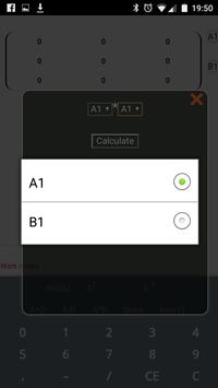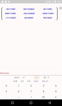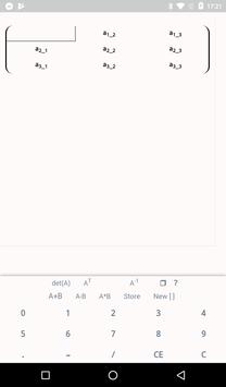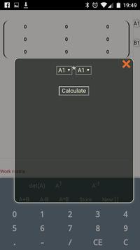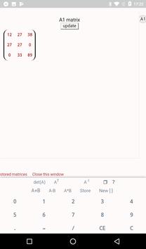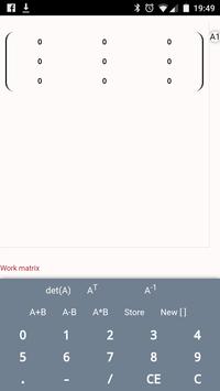 App also calculate inverse matrix, transposed matrix and power of A matrix, and performs matrices operations