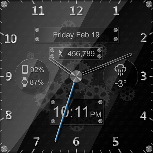 This completely customizable interactive HD Wear OS Watch Face, Clock Widget & Live Wallpaper brings a classic elegance to your wrist and Launcher. With animated gears you will be sure to catch the eye of every onlooker! Features include custom complications, battery levels, weather conditions, step counter, color picker & date information. A settings app will also be installed on your mobile device to configure the watch face for any look you desire. Select any color and create a completely custom look for yourself! Don't have an Android Wear watch? No Problem! You can use the clock widget or Live Wallpaper on your launcher!