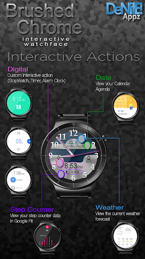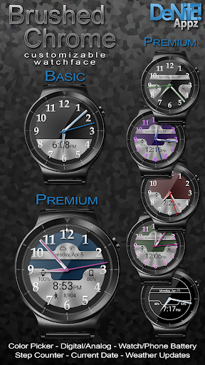 This completely customizable interactive HD Android Wear Watch Face brings a classic elegance to your wrist. Features include battery levels, weather conditions, step counter, color picker & date information. A settings app will also be installed on your mobile device to configure the watch face for any look you desire. Select any color and create a completely custom look for yourself!