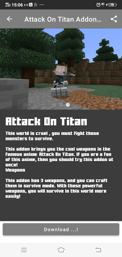 Hello you MCPE players and lovers, you must know about the AOT anime? So here we provide AOT mods for you to play. Kill the giants with the sword you have like in the anime.