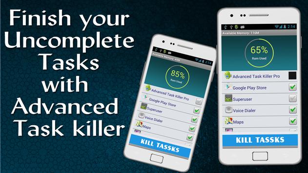 Advanced task killer and RAM booster will kill all your incomplete tasks and make your smart phone more faster and healthier.
