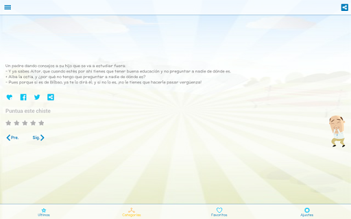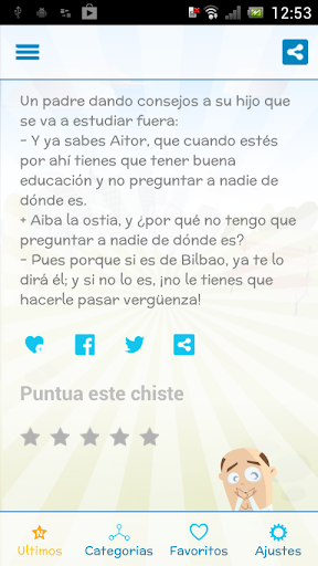 Con cada chiste gracioso, divertido, coña o broma que te eches unas risas podrás compartirlo mediante tus redes sociales y tus aplicaciones favoritas.