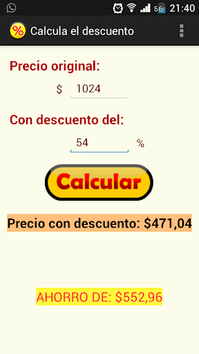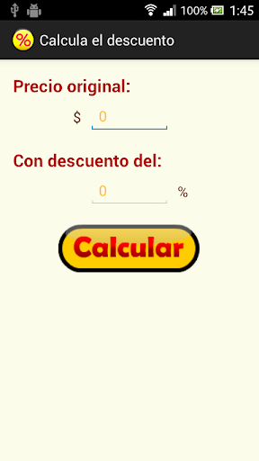 Calcula el descuento es una aplicación que te ayudara a determinar el valor de cualquier articulo una vez aplicado el descuento. Simple, fácil y efectiva.