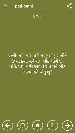 Gujarati jokes is best colection of gujarati jokes. gujarati jokes have the following category like.. santa-banta jokes, raju jokes, Rajnikant jokes, pati-patni jokes, karodimal jokes, many other jokes,