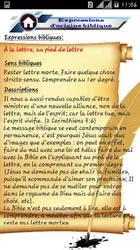Les expressions contenues dans ce document sont accompagnées de la référence du passage biblique dans lequel elle trouve leur origine (ou auquel elle renvoie le plus communément) suivies d'une réflexion sur le texte original.