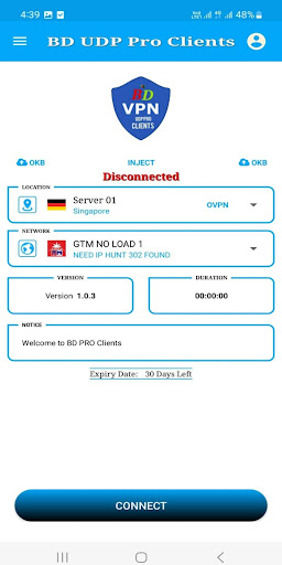 BDVPN UDP PRO Clients Best working with Your Mobile Data.
