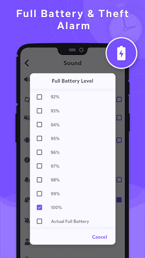 Alerts you with audio and vibration when your phone is fully charged.
