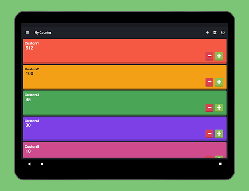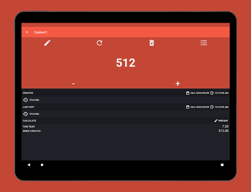 * Multiple options such as sort order, time to create new history for each operation. Total counters in your list, sum of all counters and much more can be viewed from settings.