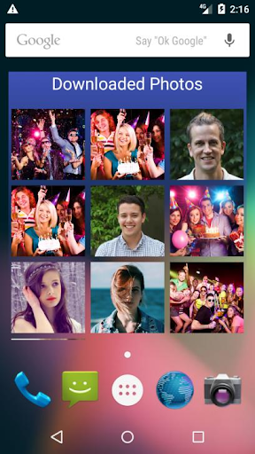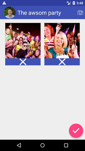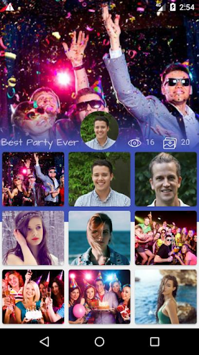 Party photos allows you to create a party room and save all the party photos u taken at this room so any of your party friends can access it without need to send the photos to every one of your friends