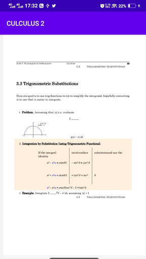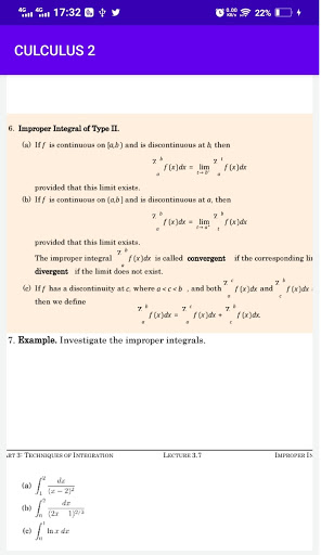The app covers the following topics -integrals -application of intergration -infinite sequence and series and revision materials