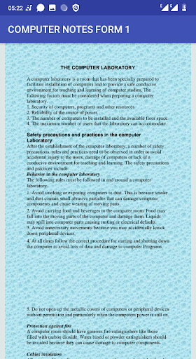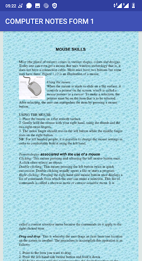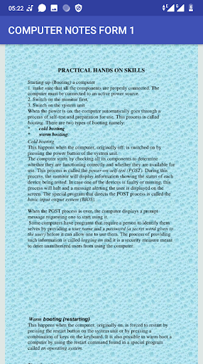 The application covers the following topics INTRODUCTION TO COMPUTERS COMPUTER SYSTEMS OPERATING SYSTEMS The notes are well organised for better understanding