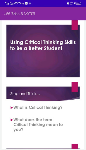 The app features the following skills: -LEADERSHIP -COMMUNICATION -CAREER CHOICE -CRITICAL THINKING -DECISION MAKING -EMPATHY -PEER MEDIATION -SELF AWARENESS -SELF-ESTEEM and more topics