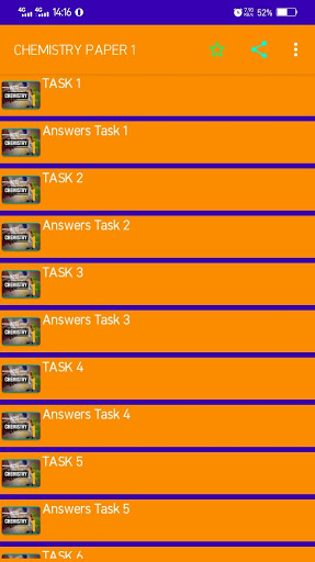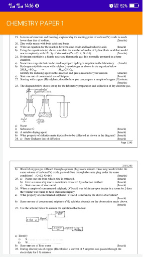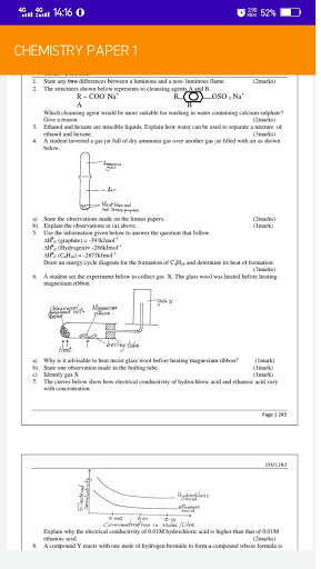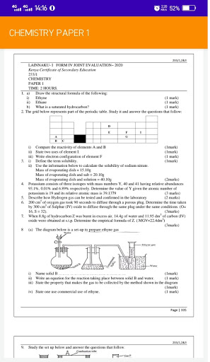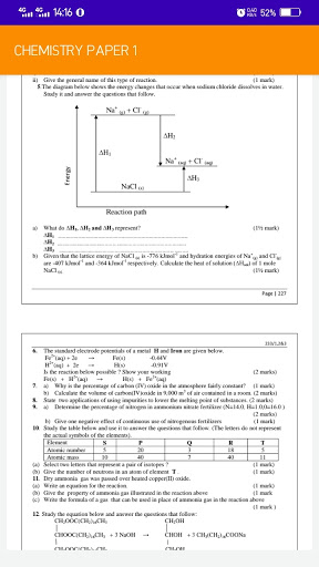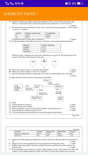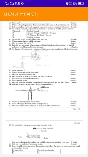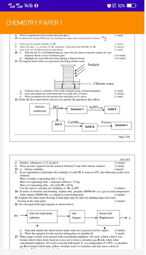 The application features Chemistry Paper one questions and answers
