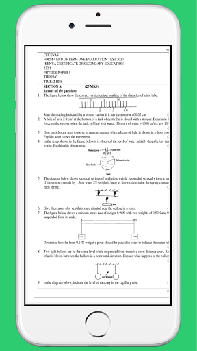The application features physics paper 1 questions and answers