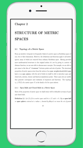 The application features the following topics. METRIC SPACES STRUCTURE OF METRIC SPACES DENSE SUBSETS IN A METRIC SPACE COMPACTNESS IN METRIC SPACES CONTINUITY IN METRIC SPACES COMPLETENESS IN METRIC SPACES