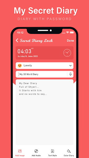 Special moments deserve a special my secret diary with lock and password. That's just another reason to install the Secret Diary with Lock. There is enough room for all your thoughts inside of the journal with password.