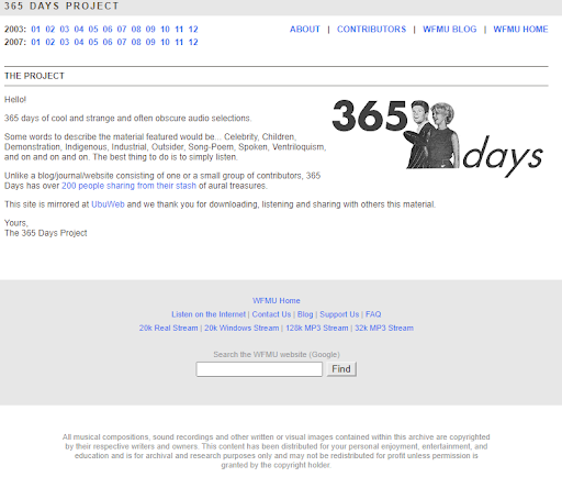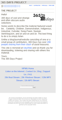 365 days of cool and strange and often obscure audio selections.