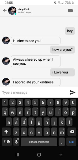 Chat With Bts Simulation - Bts video call is an application that helps you get a call right away from Jungkook, Hope,V, Suga ... talking to Bts, Looking at Bts members from the call, it is a dream for fans of Bts music group. What are you waiting for, download the Bts Fake Call - Bts video call application right away.