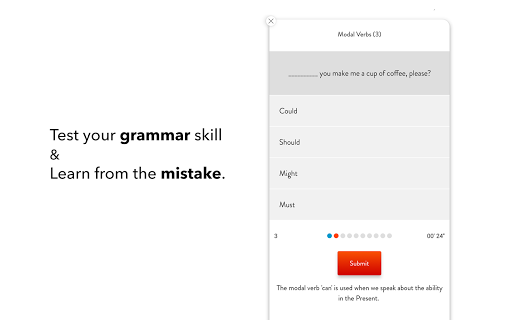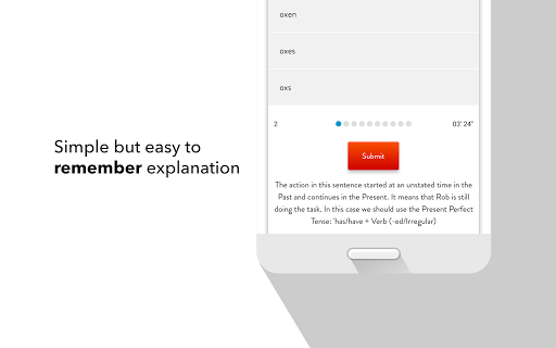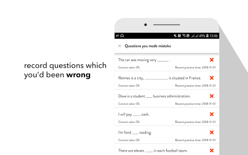 The app will records questions which you made the wrong answer so you can always see your strong and week grammar points.