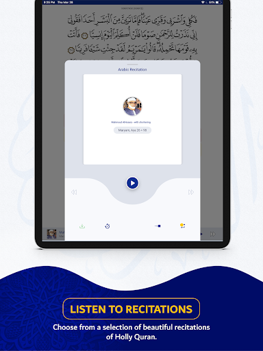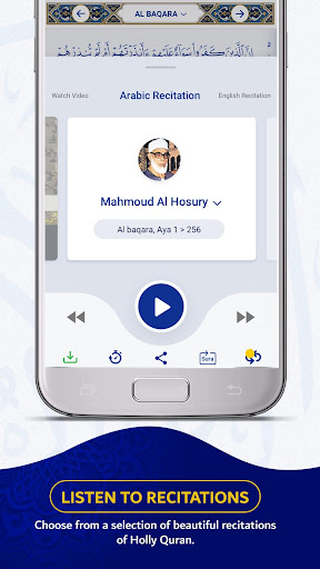 6- Listen to Recitations: Choose from a selection of beautiful recitations of holly Quran.