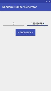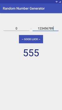 Random Number Generator generates any number from 0-999999999. Features: - Handy, easy to use - Clean and nice user interface Try your luck today by using Random Number Generator.