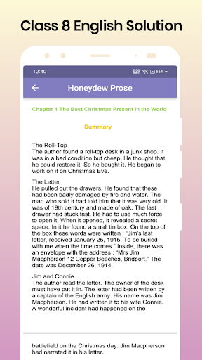 This application contains class 8 english solution chapter wise with summary and question & answers. This application contains class 8 english book solutions. I think this app is must have app for class 8 student.