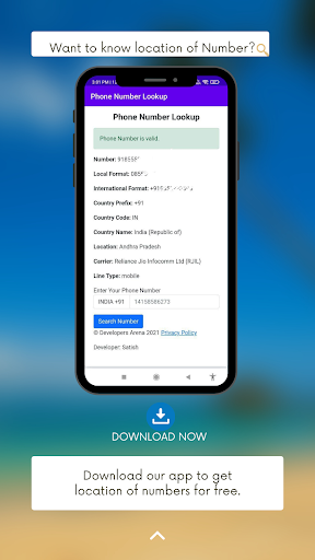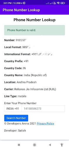 Phone Number Lookup App-This app uses rest API which makes free to all users .You can know the location and connection type of a number with just single search .
