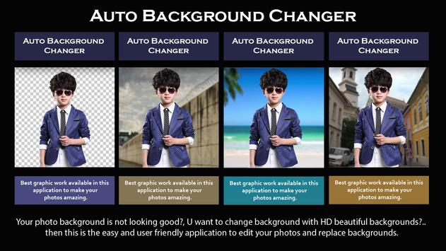 "Auto Background Changer" is an amazing application which allows the user to change his photos background automatically.Auto Photo Background Changer is the most advanced Photo Editing tool to remove photo backgrounds and Change Photo Background manually and automatically.There is many beautiful backgrounds in this application you can use anyone from them as photo background.It includes the feature of shift Edges and Refine Edges to give Great Results.This application is totally free and easy to use even child's can use it easily.