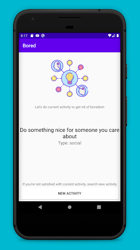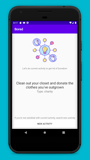 If you're bored and don't know what to do for being productive, the app shows endless random activities to utilize your time.