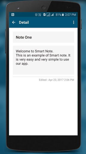 Smart Note,designed to take notes and navigate with minimum clicks and taps.Smart note having very user friendly interface,simple and easy to use and professional.