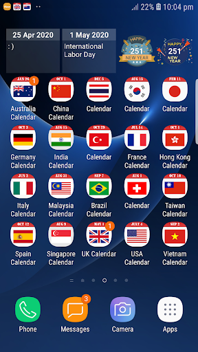 You may also add your own daily, weekly, monthly or annual events. You can use it to track your own diary of events such as planning your vacation, sports events or your friends and families' birthdays. The events are tagged with colorful icons for easy reference. It is simple to create the events. You may create events within a short duration as well, by specifying the start and end dates of the event.