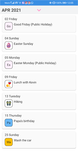 Add individuality to the calendar with colors and icons. You may set the background and font color of your choice. Make it colorful to brighten up your day.