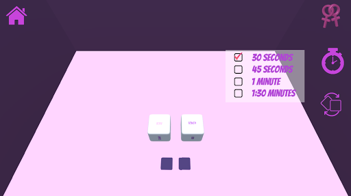 Siempre podrás cambiar de juego de dados pulsando el botón habilitado para ello, además, en los juegos "Soft Dices", "Custom Dices" y "Places Dices" ¡hay un botón para elegir un cronómetro!.