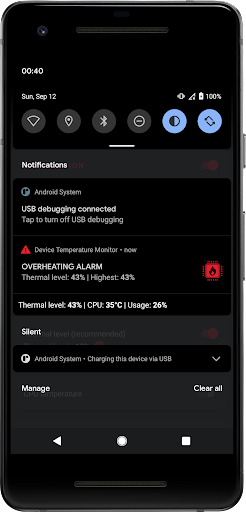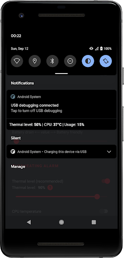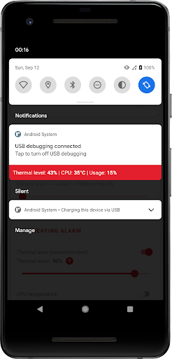 • See Thermal Level|CPU temperature|CPU usage all the time in lightweight notification.
