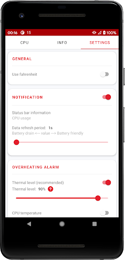 Monitor CPU and device temperature in real time with the CPU & Device Temperature: Monitor & Alarm app. It's a user-friendly lightweight application for monitoring device temperature with the possibility of setting an alarm when the temperature is exceeded.