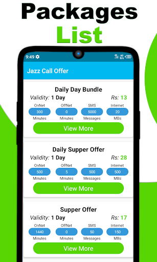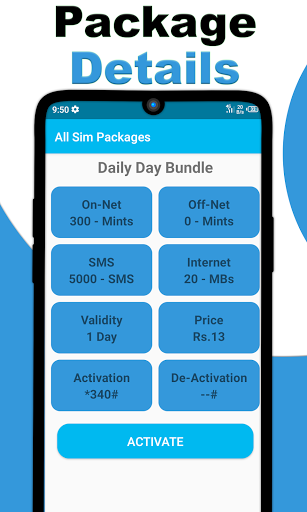 Are you tired from remembering your sim packages codes or instant dialed numbers then this application will provide you all type of bundles and packages of any network any sim . This application contains all bundles of internet , sms , call and 3G or 4G data. You just have to install this application and all packages of any network which you are using is available in one plate form. This app contains packages of all mobile networks such as Jazz, Telenor, Ufone and Zong. This app also contains information of PTCL, 3g/4g devices and smart phones.